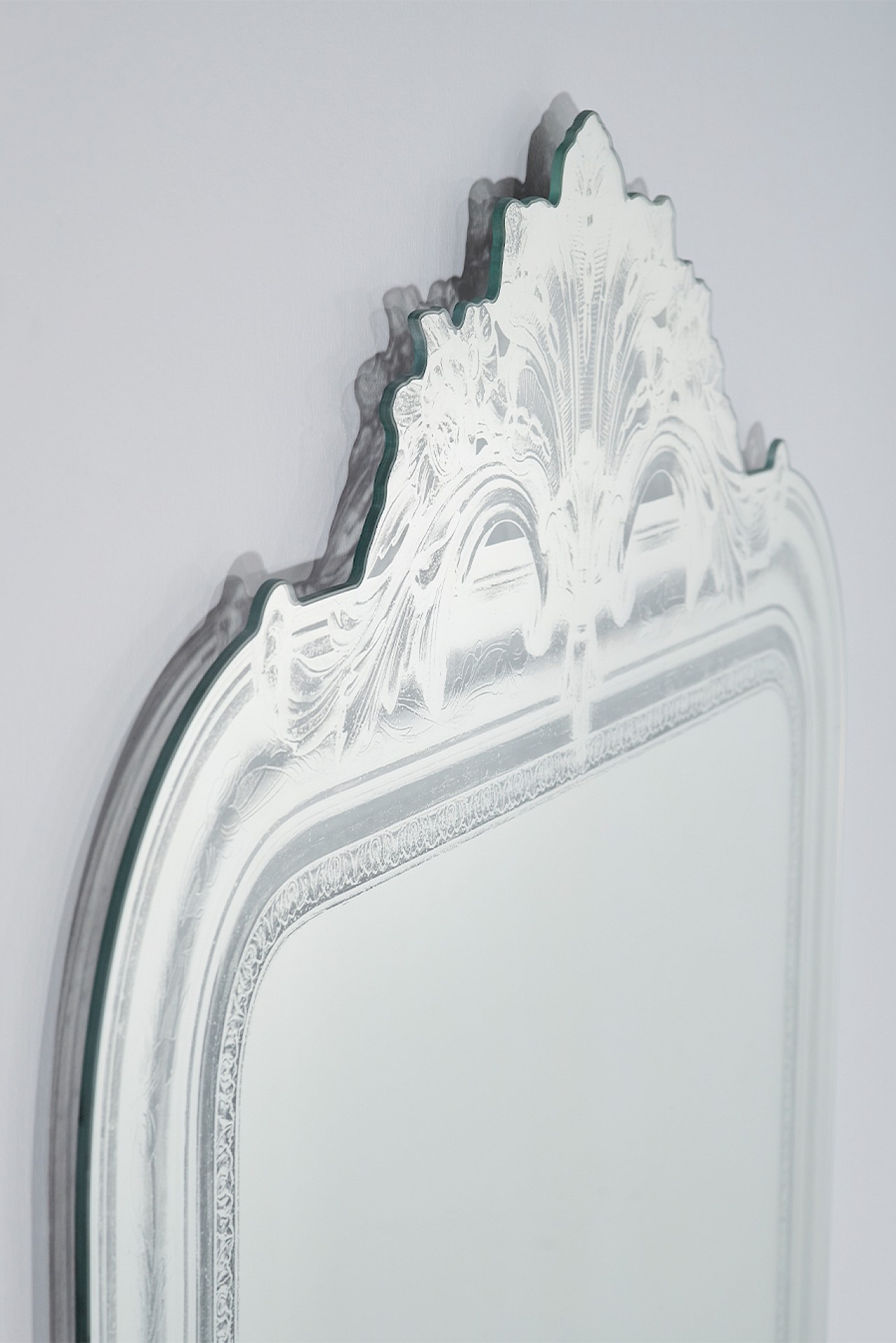 Dieses Design ist inspiriert von einem originalen Haussmann-Spiegel aus dem 19. Jahrhundert, neu interpretiert als zweidimensionales Silhouette. Mit modernen Techniken wurde die komplexe Form in eine geschichtete Komposition aus Transparenz und Versilberung übersetzt. Das Ergebnis ist ein eindrucksvoller Spiegel, der die Essenz des Originals einfängt und dennoch völlig zeitgemäß wirkt.