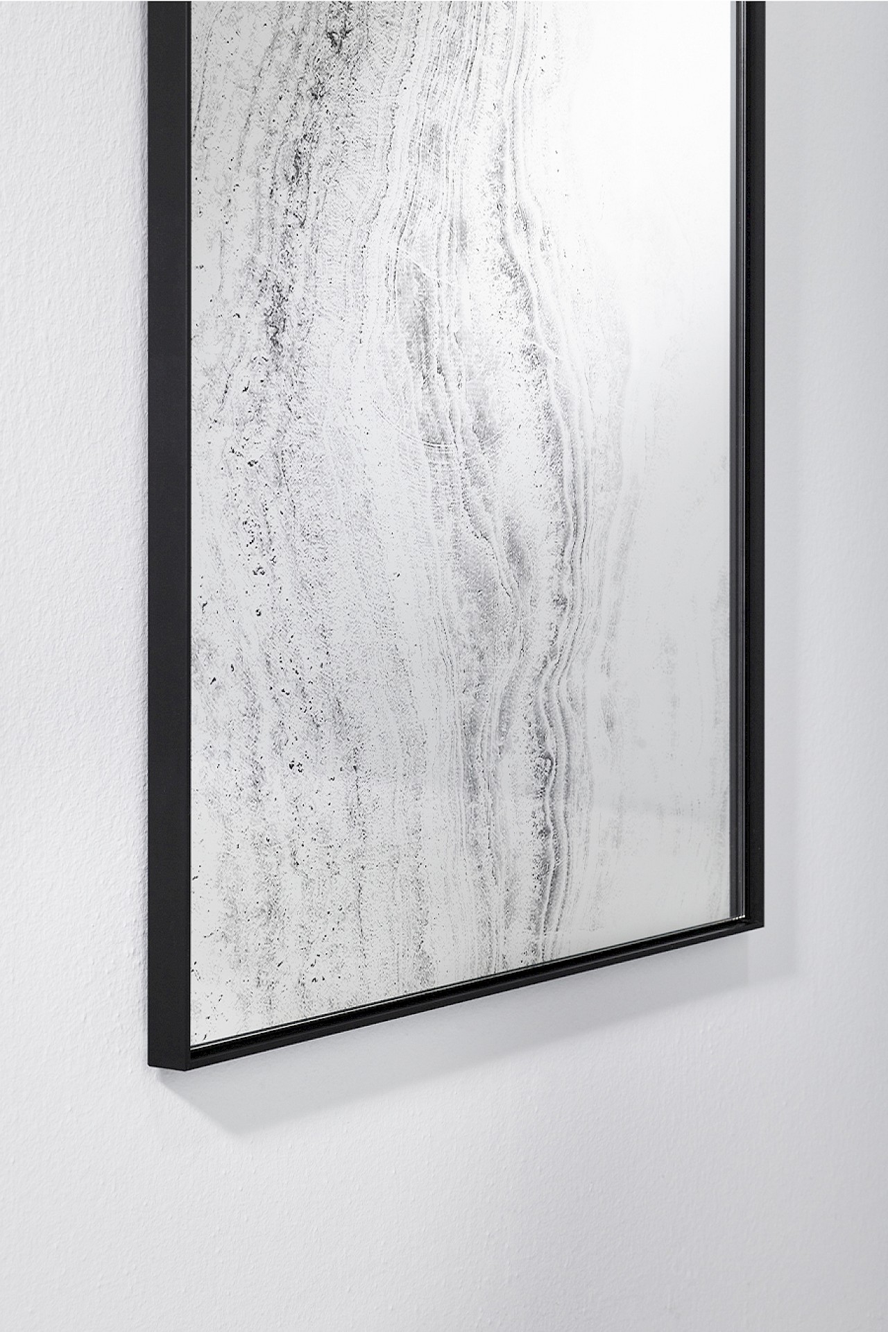 The immediately-recognisable lines and swirls of limestone give TRAVERTIN its depth and character. The texture of this beautiful sedimentary rock is applied to the glass using silkscreen printing just before the silvering process. A sleek metal frame encloses this organic image, creating a piece of art. The print is very delicate and doesn’t heavily impact upon the functionality of the mirror. Travertin is a slender mirror that can be hung either horizontally or vertically.
